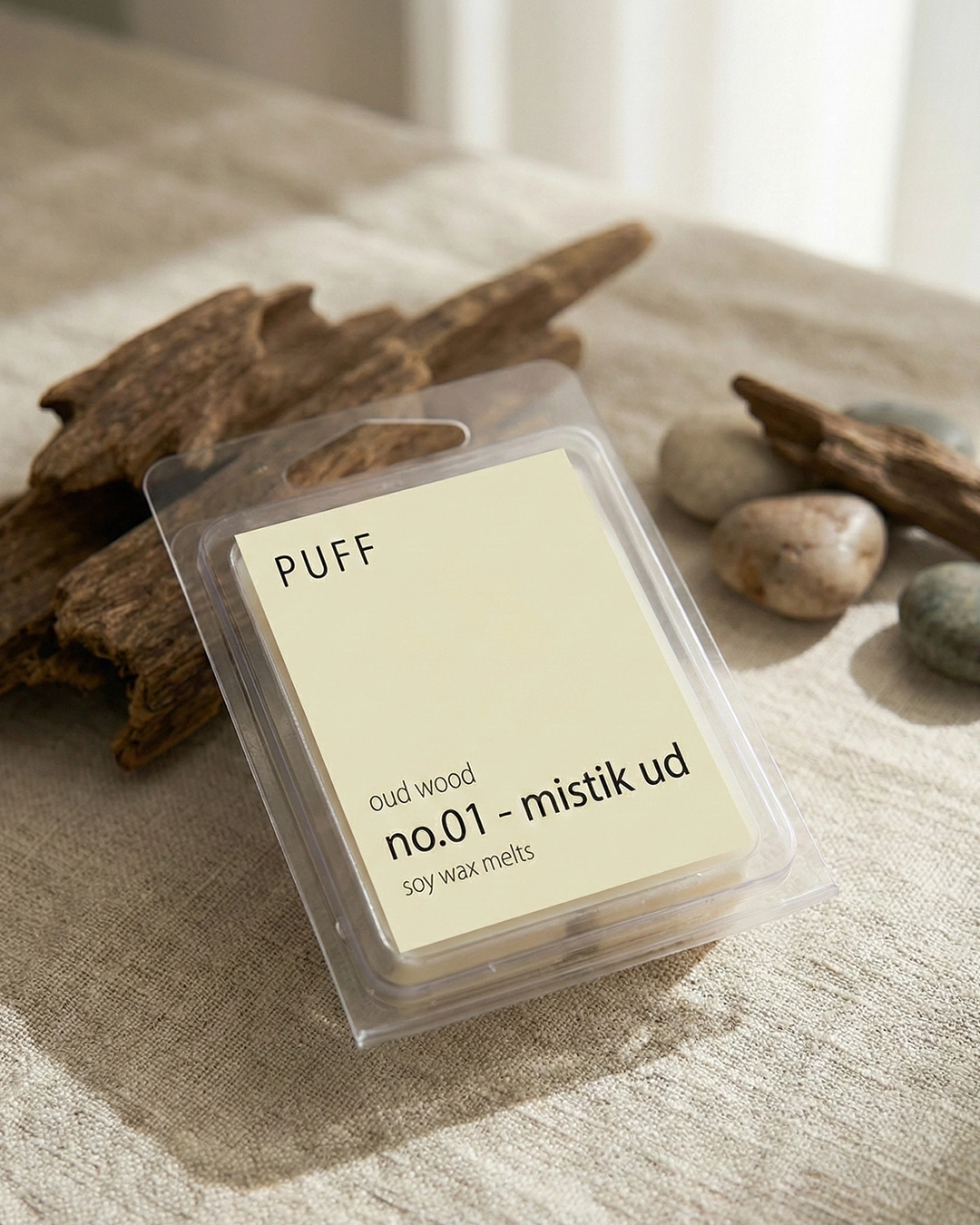 Ud ağacı kokulu doğal soya wax melts, yoğun ve odunsu notalarıyla yaşam alanlarında derin, güçlü ve sofistike bir atmosfer oluşturur.